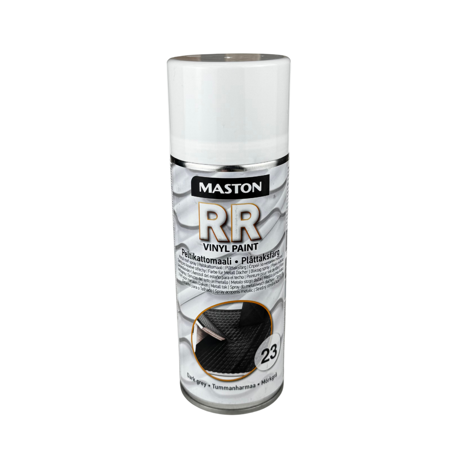 Maston peltikatto (vinyyli) spraymaali erityisesti peltikattojen korjaukseen. Soveltuu myös muille yleisille pinnoitusmateriaaleille. Helppokäyttöinen – tarttuu ilman erillistä pohjamaalia polyuretaani-, vinyyli-, muovi- ja polyesteripinnoille. Ainutlaatuisen koostumuksen ansiosta maali kestää kuumuutta ja auringonvaloa. Erittäin kestävä UV-suoja, ei haalistu.